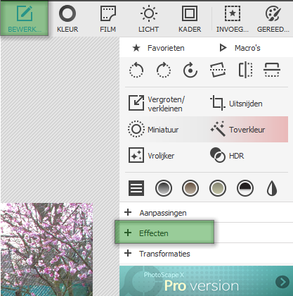 - Kies : Gereedschap - Bewerken -