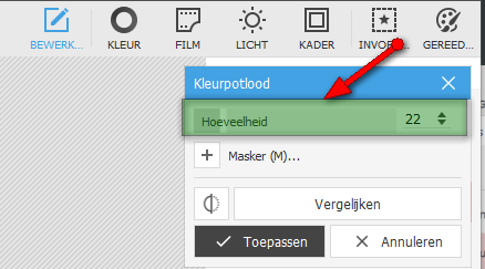 - Je kan nu bij 'Hoeveelheid' de instelling wijzigen....