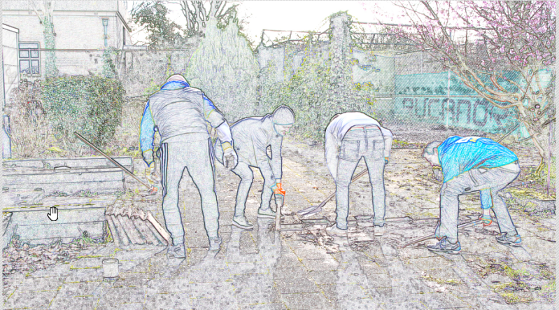 Photoscape X heeft een effect 'Kleurpotlood'. Éen van de mogelijkheden is hiermee een combinatie te maken met het origineel....