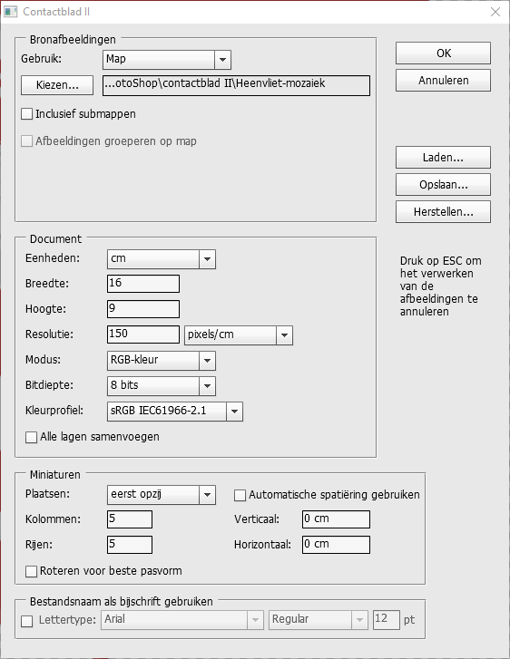 - Plaats de foto's voor het contactblad/mozaiek in een submap van deze map