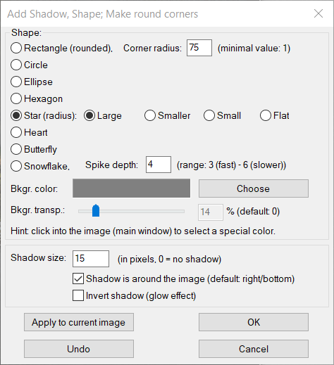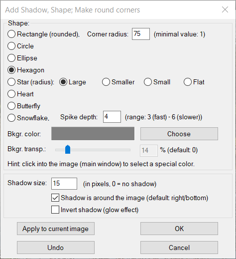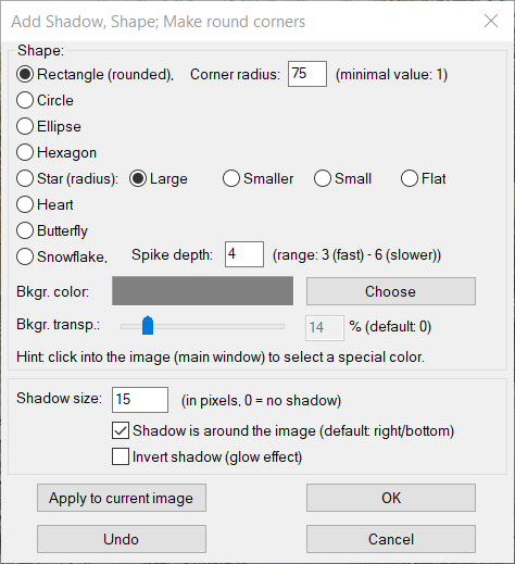Menu: Afbeelding - Schaduw, Vormen, Ronde hoeken toevoegen
