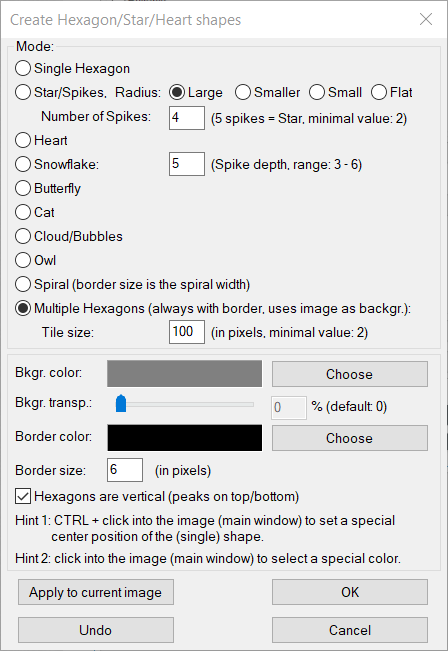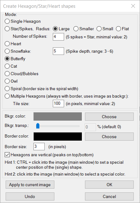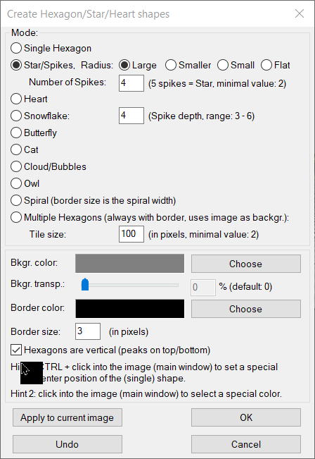 IrfanView Zeshoek, Ster, Heart,cat etc