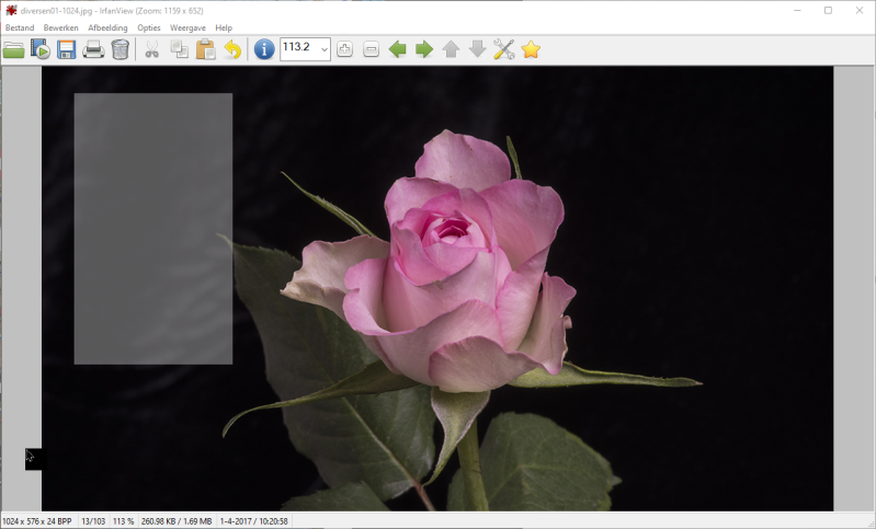 Met deze optie kan je op een afbeelding een vierkant plaatsen waarvan de transparantie is in te stellen.
