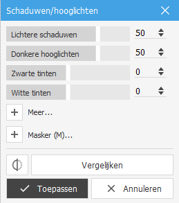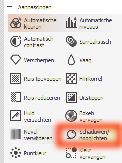 Menu: Editor - Bewerkingen - Aanpassingen - Schaduwen/Hooglichten