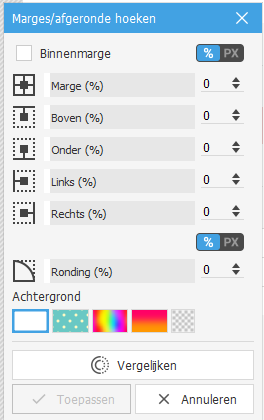 - Menu: Editor - Bewerk - Marges/Afgeronde hoeken