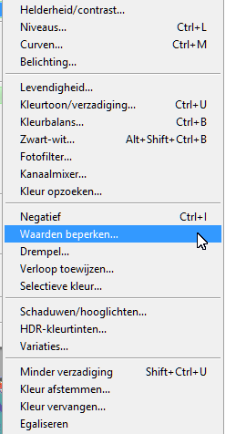 - Kies op de juiste laag voor: Afbeelding – Aanpassingen – Waarden beperken.