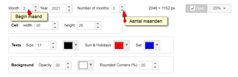 - Pas alle kleuren voor werkdagen en weekenden aan