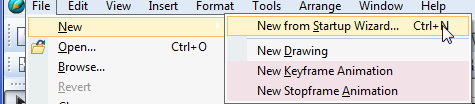 Menu: File - New from Startup Wizard...